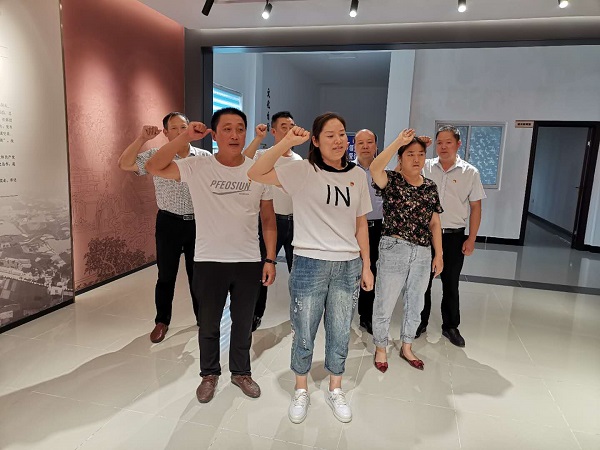 馆内,杨明山一行向革命先烈缅怀敬礼,向老一辈党员干部致敬,向拥有光辉历程的伟大祖国致敬。最后,所有党员面向党旗重温入党誓词。活动中,党员们进一步坚定“不忘初心,牢记使命”的信念。党总支书记杨明山说:“村企联建是党建引领强组织、谋发展、促振兴的一项有力举措,实现了村企双方的优势互补、1+1大于2的效果。接下来,我村将持续解放思想、锐意创新,寻找村企联建可能的共建方式,为实现乡村更好、更快、更大的发展注入催化剂,打赢脱贫攻坚,助力乡村振兴。”