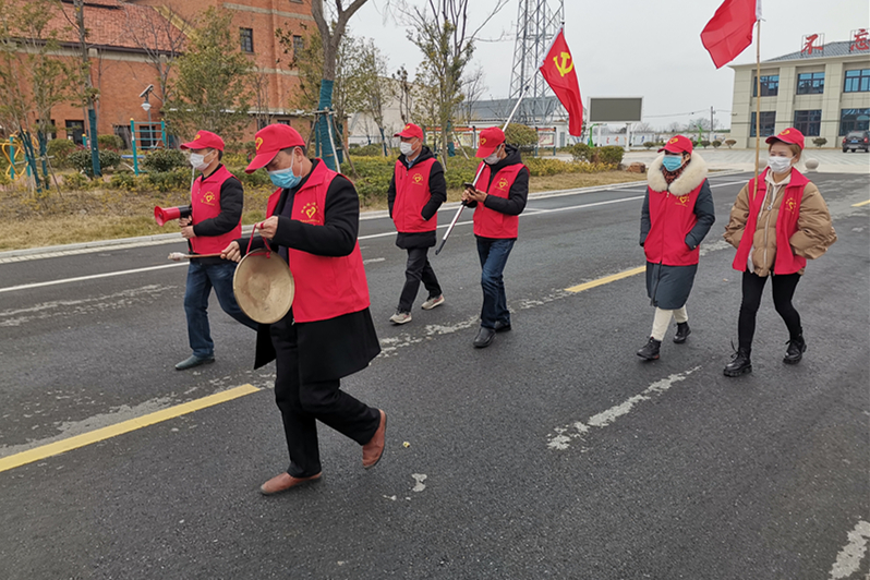 为抗击疫情,安乐社区成立疫情防控志愿者服务队,于每天上午下午走街入巷进行疫情防控宣传!图为2月7日志愿者宣传图!