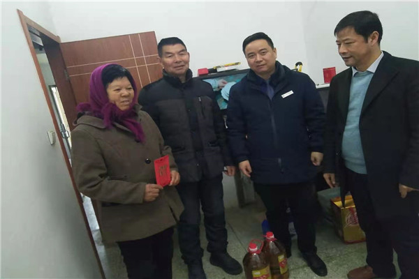 2021年1月22日,春节前夕天长农商行乔田支行主任与乔田社区副书记一同前往乔田社区长庄组贫困户於相武家中,送上慰问品和少许现金,夫妻二人对他们的到来表示感谢。