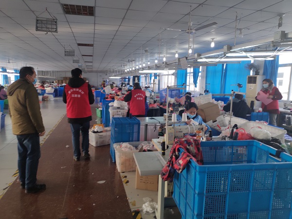 活动中,村干们挨家挨户地发放《致广大居民朋友们的一封信》以及《天长市民文明过节倡议书》,对视力差或者不识字的居民,村干主动读给他们听,并强调其中重要的部分。在进新德赛制衣厂宣传过程中,新德赛党支部书记姚正昌带领村干对每位员工进行宣传,对有不清楚的地方,村干们也耐心解释,说明现在的疫情形势,倡导大家务必做好个人防护工作。