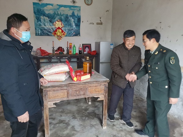近日,新街镇武部部长王以生利用假期时间在新街村民兵营长熊应珠的陪同下到我村积极开展走访慰问现役军人家庭活动,为我村现役军人军属们送去了温暖和新年祝福。
