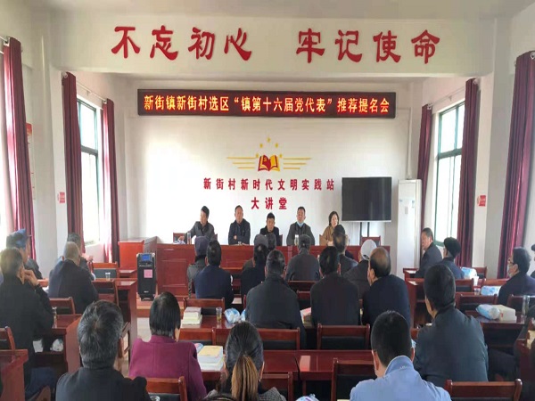 4月8日上午,新街镇新街选区召开“镇第十六届党代表”推荐提名会。会议由新街村党总支书记杨明山主持,新街村党支部和新德赛党支部全体党员,镇工作指导组代表李义参加本次会议。