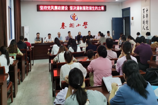 为进一步加强教师党风廉政建设,筑牢廉洁思想防线,增强党员干部规矩意识和纪律意识。9月5日,秦栏小学党支部召开“坚持党风廉政建设,坚决遏制腐败滋生的土壤” 专题会议,会议由书记王建河主持,全体教师参加。