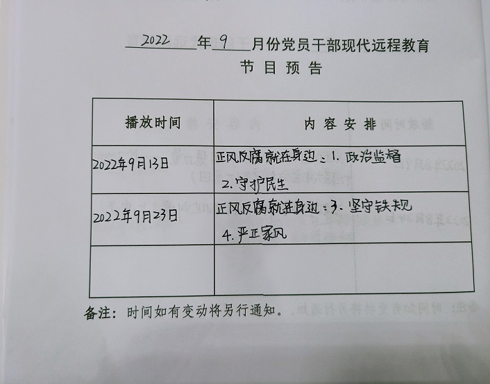铜城镇余庄村2022年9月远程教育播放计划如上图所示。