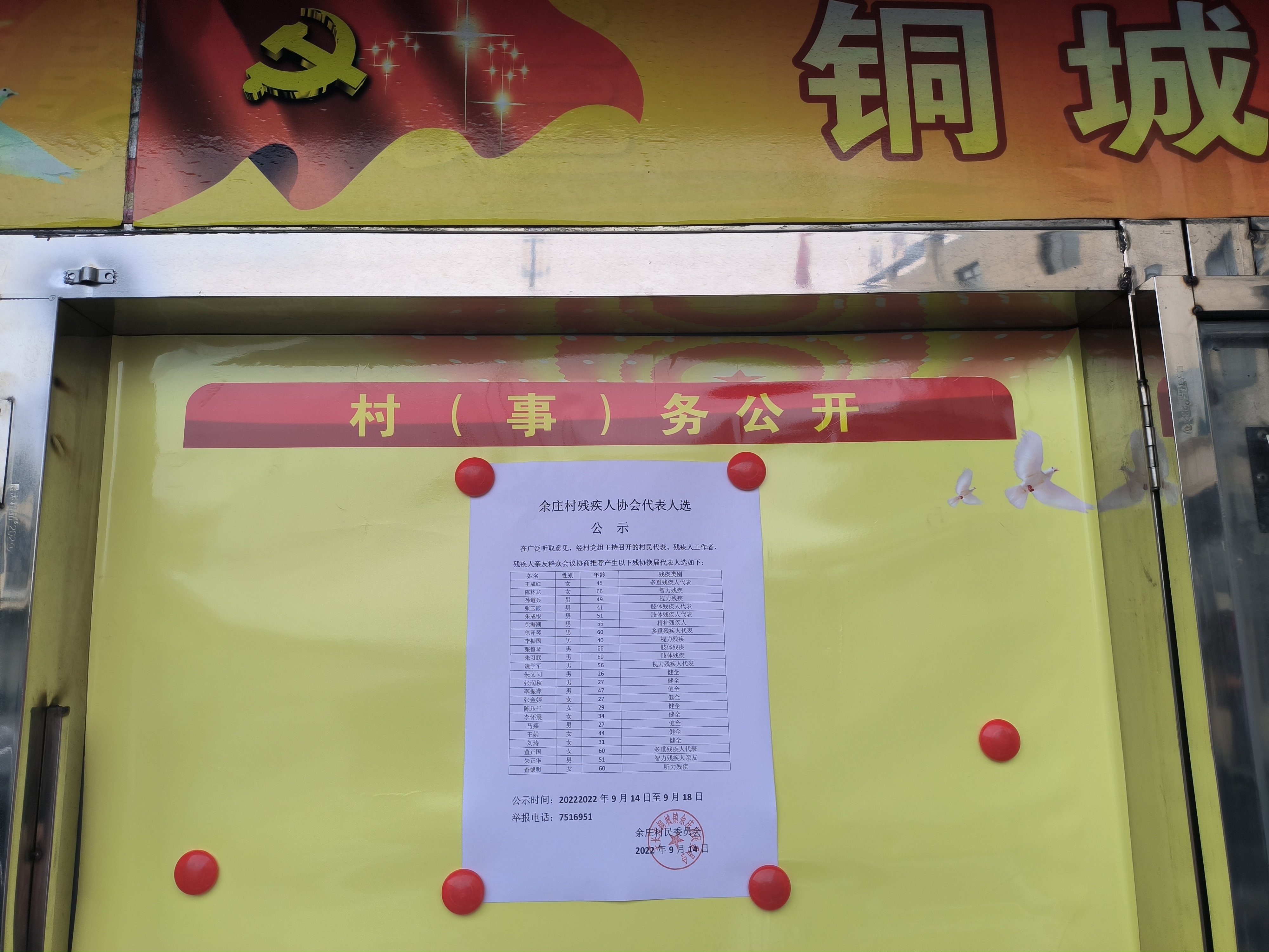 铜城镇余庄村残疾人协会代表人选公示如上图所示。