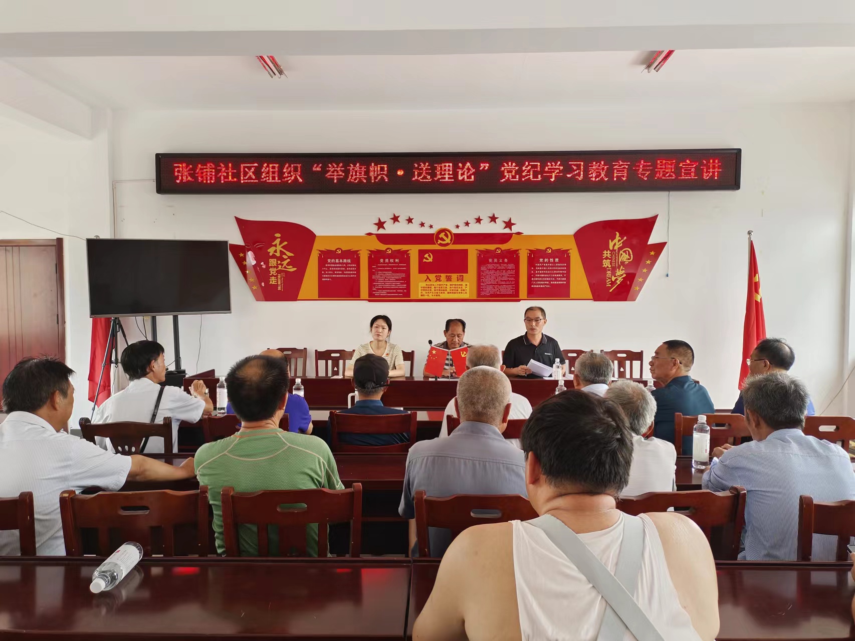 为推动学习贯彻《中国共产党纪律处分条例》,使党纪学习教育入脑入心、走深走实,8月14日,张铺社区组织开展“举旗帜,送理论”党纪学习教育专题宣讲活动。