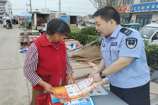 活动中,滁州市天长市杨村镇组织杨村司法所、新时代文明实践所等部门,采取“主会场+分会场”联动模式开展宣传工作。“主会场”设立在人流密集的镇农贸市场门口,通过悬挂横幅、发放《民法典》《中华人民共和国消费者权益保护法》《中华人民共和国乡村振兴促进法》等普法手册,用“案例+法条”的通俗语言,现场为群众讲解邻里纠纷调解、土地流转、反电信诈骗等与生产生活密切相关的法律知识。