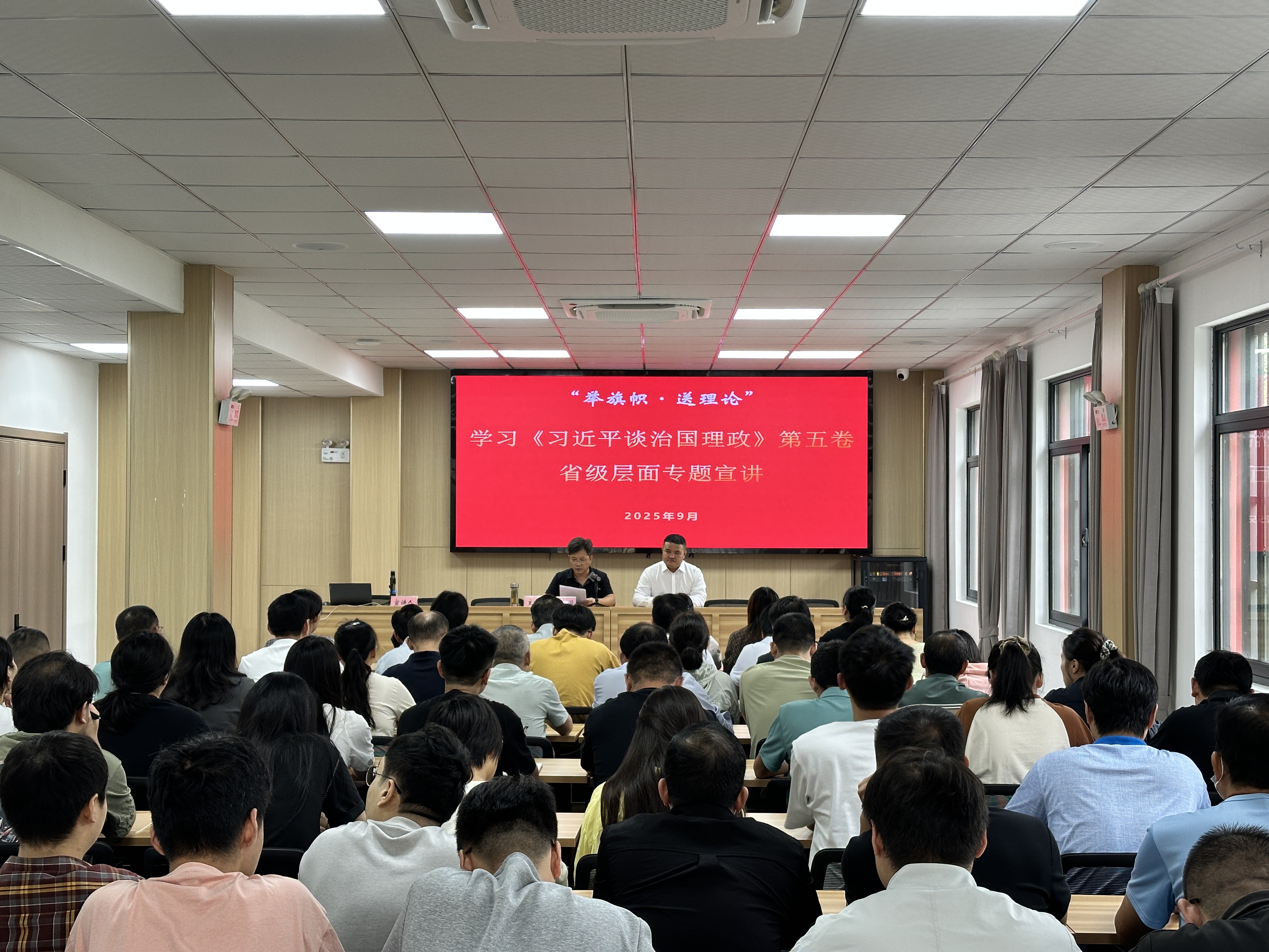 宣讲中,余立教授以深入学习领会习近平新时代中国特色社会主义思想最新成果的权威著作——学习《习近平谈治国理政》第五卷为题,从深刻领会重大意义、准确把握丰富内涵、理解体悟重要概念、遵循贯彻世界观方法论四个方面对《习近平谈治国理政》第五卷进行了系统全面、深入浅出地解读。整场报告内容翔实、逻辑严密、阐述深刻,兼具理论高度与实践深度,为基层干部更好学习领悟《习近平谈治国理政》第五卷提供了有力帮助。