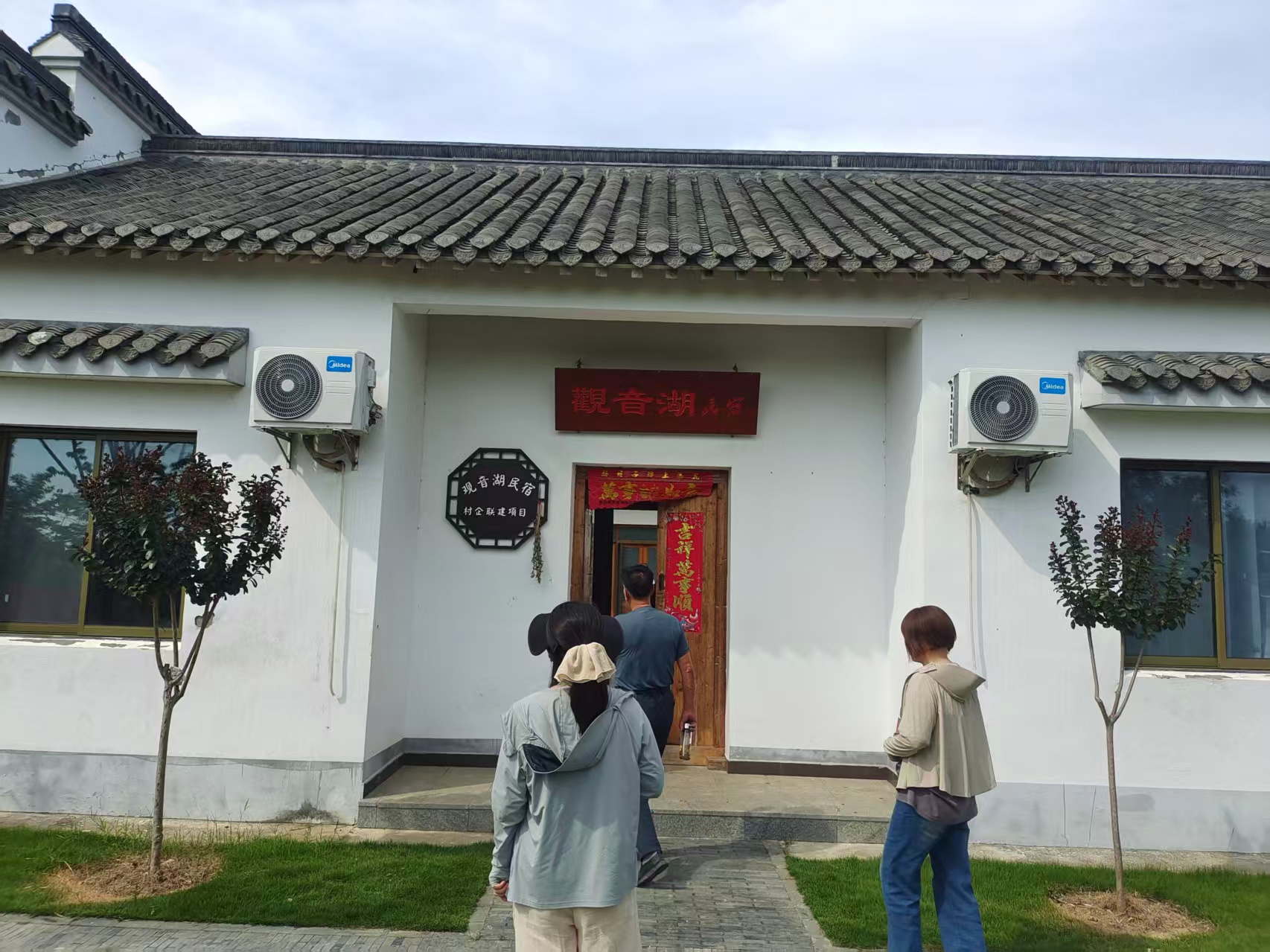 活动伊始,全体党员参观共建项目——观音湖民宿,安徽观音湖生态农业科技有限公司党支部书记周琪云向全体党员介绍道,近几年来,石梁镇通过举办观音湖“赏花节”活动,极大提升了观音湖的知名度,每到花开季节,日均接待游客上千人,已成为方圆百公里范围内知名的旅游目的地、网红打卡地,也是当地群众休闲娱乐的好去处。目前,公司已打造成集旅游、休闲、民宿、康养等于一体的生态农业科技园。
