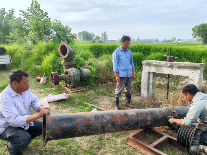 抗旱期间,党员干部冲锋在前,组成3支“抗旱突击队”,24小时巡查机站、维修设备。为确保抽水机正常运转,突击队不畏艰难险阻日以继夜始终坚持在抗旱一线。