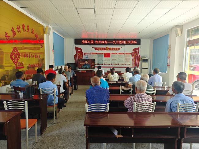 2025年9月3日,在这个特殊的日子里,为铭记历史、缅怀先烈,弘扬爱国主义精神,齐庙村精心组织党群代表齐聚村文化活动中心,共同观看九三胜利日大阅兵直播。