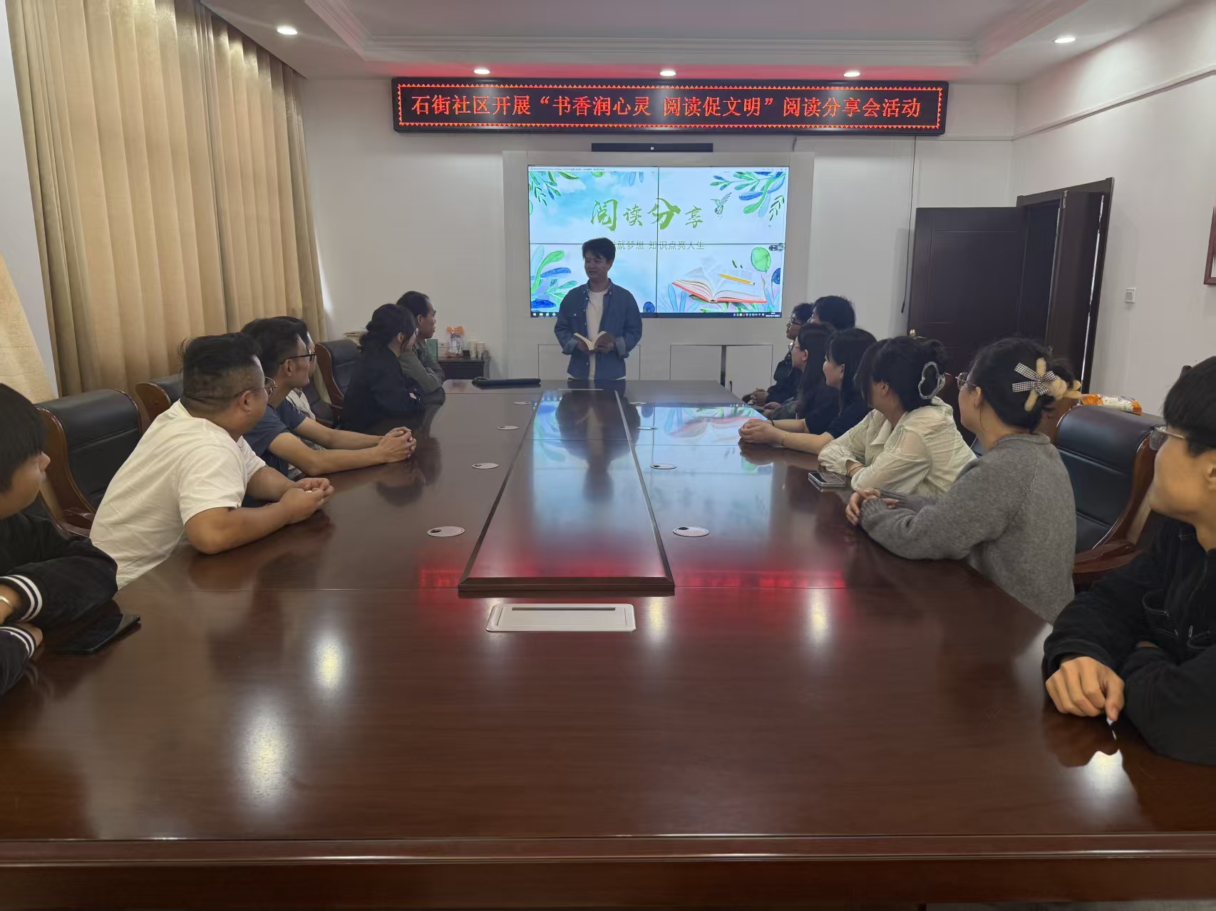 为丰富社区居民精神文化生活,营造“爱读书、读好书、善读书”的文明氛围,2025年10月15日,石梁镇石街社区新时代文明实践站组织开展“书香润心灵 阅读促文明”主题读书分享会,吸引了辖区内30余名居民参与,让书香飘满社区每个角落。