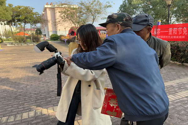 与此同时,另一项温馨的“为老免费拍照”活动也在同步进行。摄影师在小区内搭起了简易背景,耐心地为每一位前来参与的老人整理衣装、梳理头发,用镜头捕捉他们最美的瞬间。对于很多在船上劳碌了大半辈子的老人来说,这样正式的拍照机会尤为珍贵。他们在摄影师的指导下,露出腼腆而开心的笑容。一张张照片,定格的是他们安居乐业后幸福满足的晚年生活,也寄托了我们对他们最美好的节日祝愿。