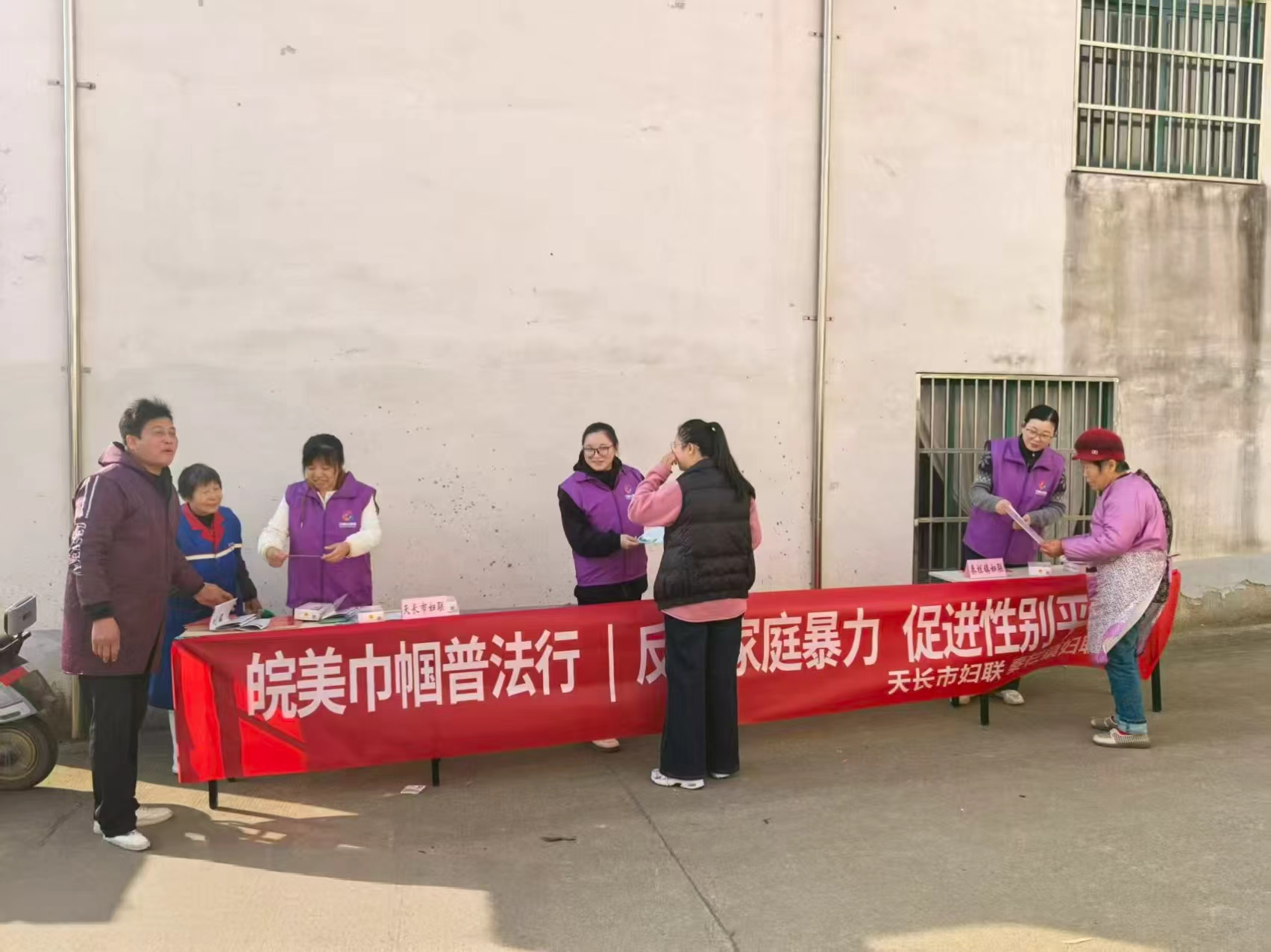 为进一步提升妇女群众法治意识,筑牢反家庭暴力法治防线,切实维护妇女合法权益,结合11月 25 日国际消除家庭暴力日,11月24日,天长市妇联联合秦栏镇妇联,在秦栏镇共同开展“皖美巾帼普法行|反对家庭暴力 促进性别平等”普法宣传活动,将法治温暖与维权力量送到群众身边。