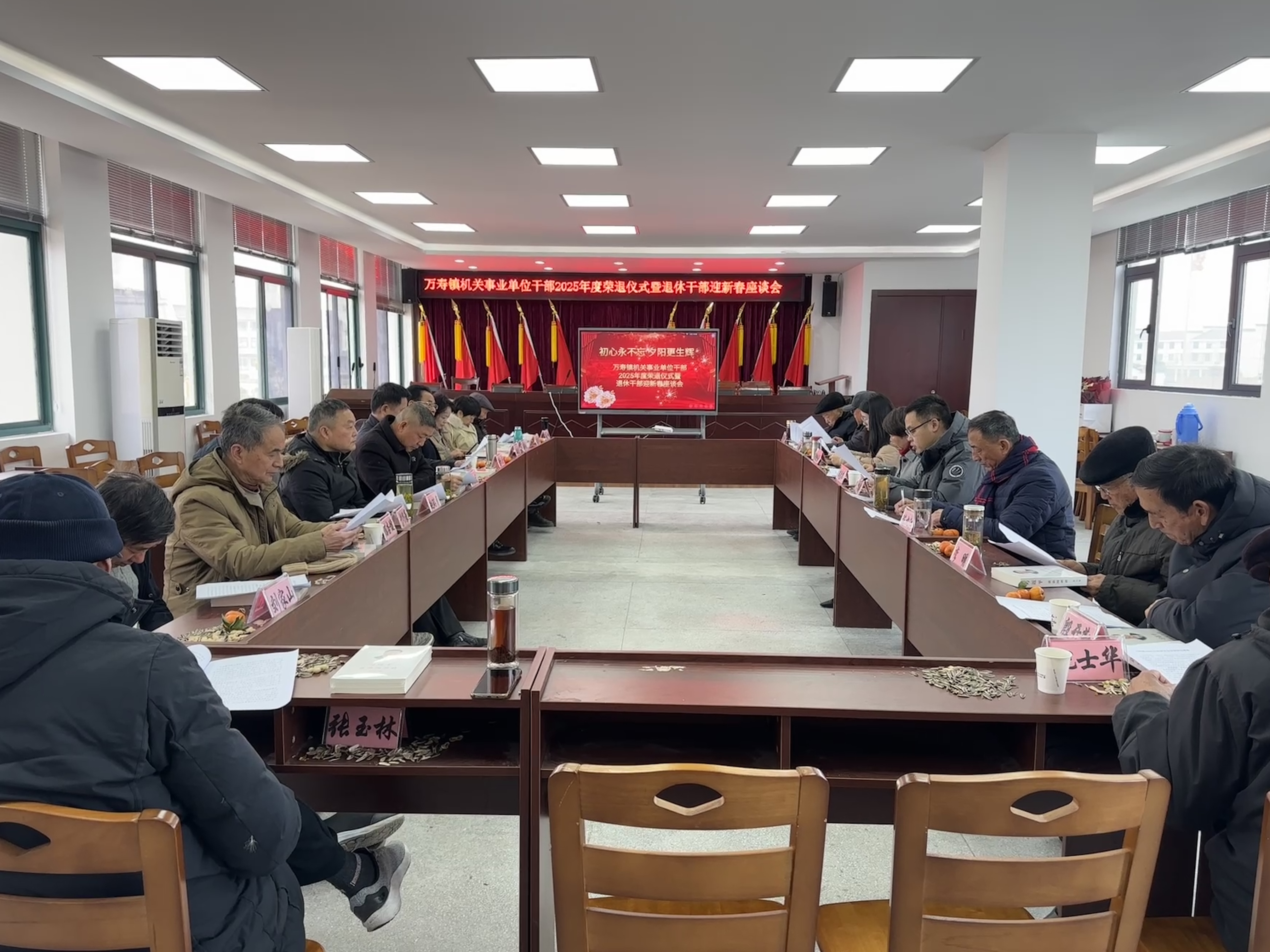 春潮涌动启新程,温情致敬守路人。2026年2月9日上午,万寿镇机关事业单位干部2025年度荣退仪式暨退休干部迎新春座谈会隆重举行,镇党委书记、副书记、组织委员及全体退休干部参加会议,大家欢聚一堂,辞旧迎新,共叙情谊,共谋发展。