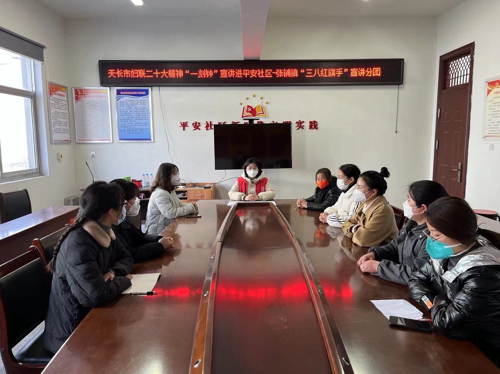 为深入学习宣传贯彻党的二十大精神,12月20日,张铺镇妇联“三八红旗手”宣讲分团走进平安社区,社区妇女、巾帼志愿者、社区干部参加这次宣讲,宣讲会由张铺镇妇联主席主持。