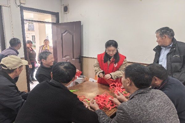 “剪”出温情,共话桑麻。“王奶奶,您看这样折角,窗花的纹样会更匀称。”在郑集镇敬老院活动室内,一场“银发伴青丝,巧手剪重阳”主题剪纸活动温馨开展。青年志愿者与老人并肩而坐,手持红纸与剪刀,一边讲解剪纸技巧,一边倾听他们讲述往昔岁月,分享如今的幸福生活。银发与青丝相映,剪声与笑语交织,不一会儿,一副副寓意吉祥的窗花在老人手中绽放。78岁的张爷爷手持刚完成的“重阳菊”窗花,欣慰地说:“几十年没剪过了,有这些年轻人陪着,心里特别暖!”活动不仅锻炼了老人的动手协调能力,更在轻松愉悦的氛围中搭建起代际沟通的桥梁。