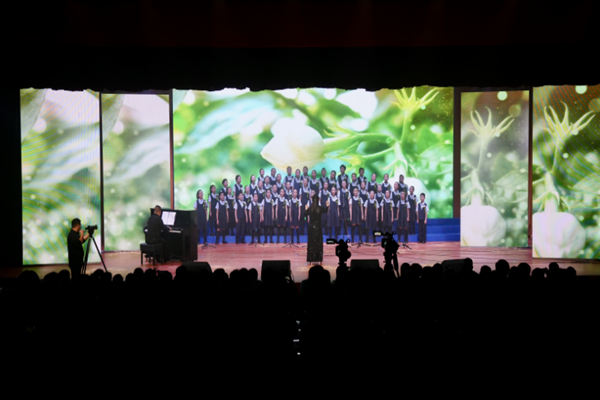 整场演出分为“初蕊”“绽放”“飘香”三个篇章,通过节目与专题视频交织,展现《茉莉花》在天长的传唱历程,以及传统文化与地方文化融合生长的动人图景。演出尾声,教师合唱团与全场观众齐声同唱《茉莉花》,将气氛推向高潮。