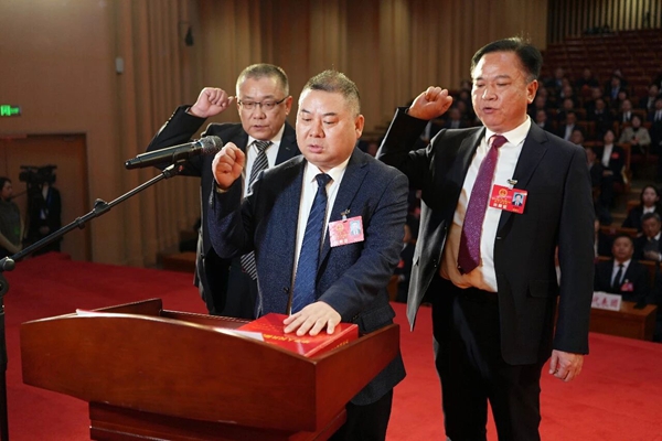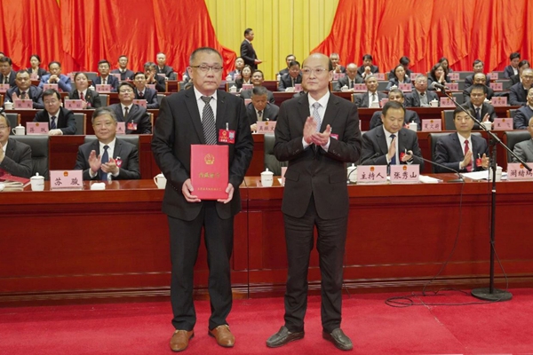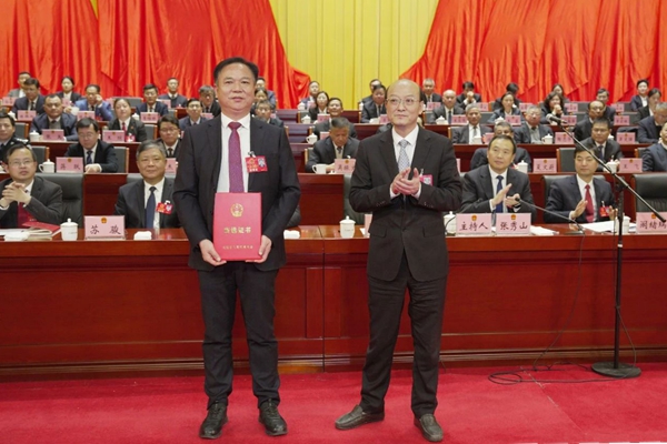市人大常委会党组书记、主任张宏生向新当选人员颁发当选证书。