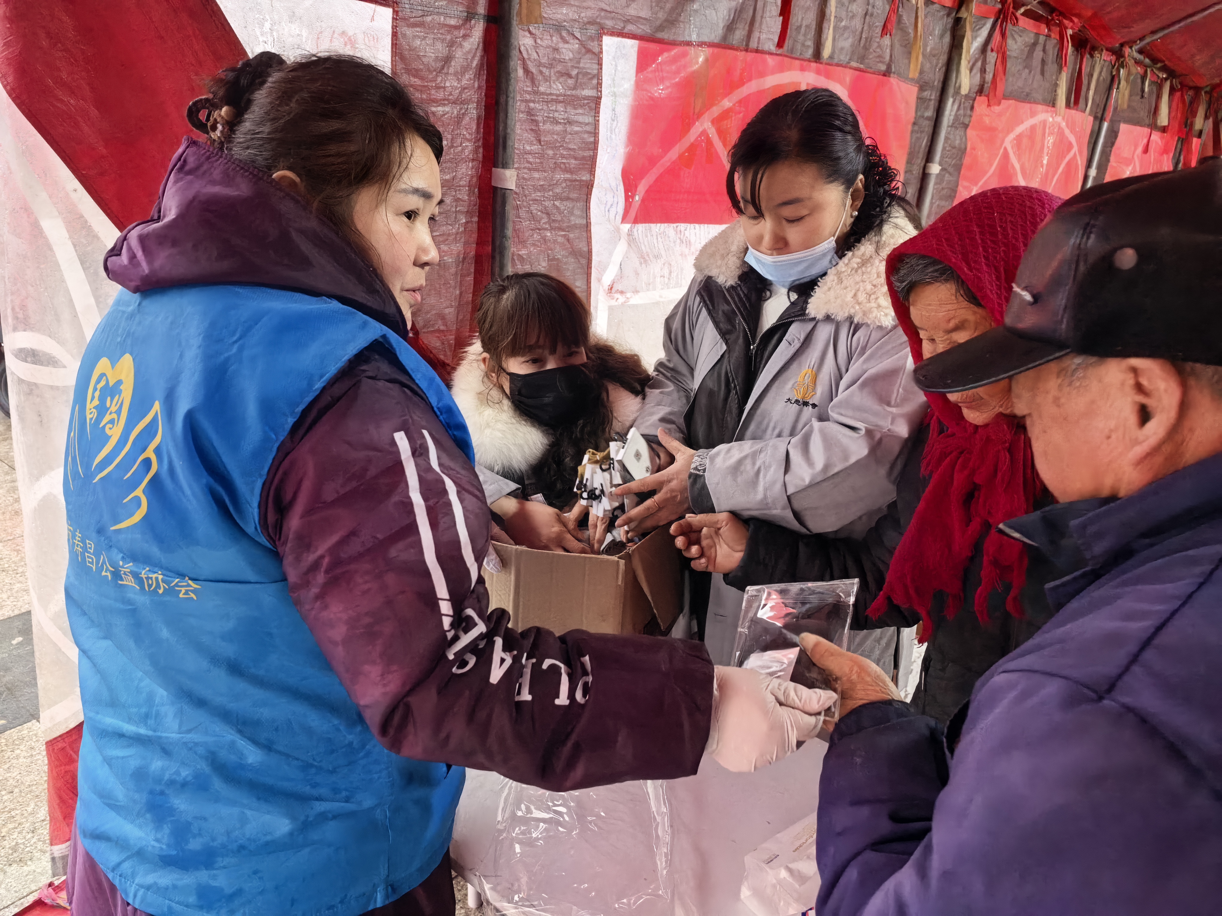 “粥甜,心里更甜!这手套袜子来得太及时了,天冷出门正好用上,太感谢你们了!”一位领到物资的老人紧紧握着志愿者的手,激动地说道,朴实的话语里满是感动。