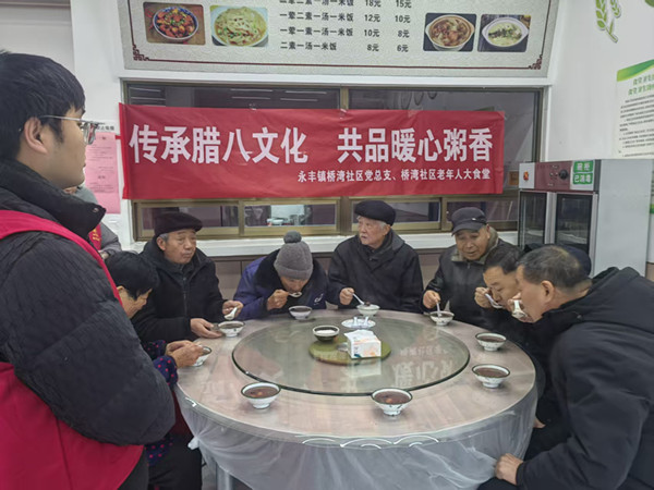 腊八至,年味浓。1月26日是农历腊月初八,永丰镇桥湾社区党总支携手社区老年人大食堂,开展“传承腊八文化,共品暖心粥香”主题活动,组织志愿者精心熬制香甜软糯的腊八粥,为辖区老党员送去节日的问候与真挚的关怀。