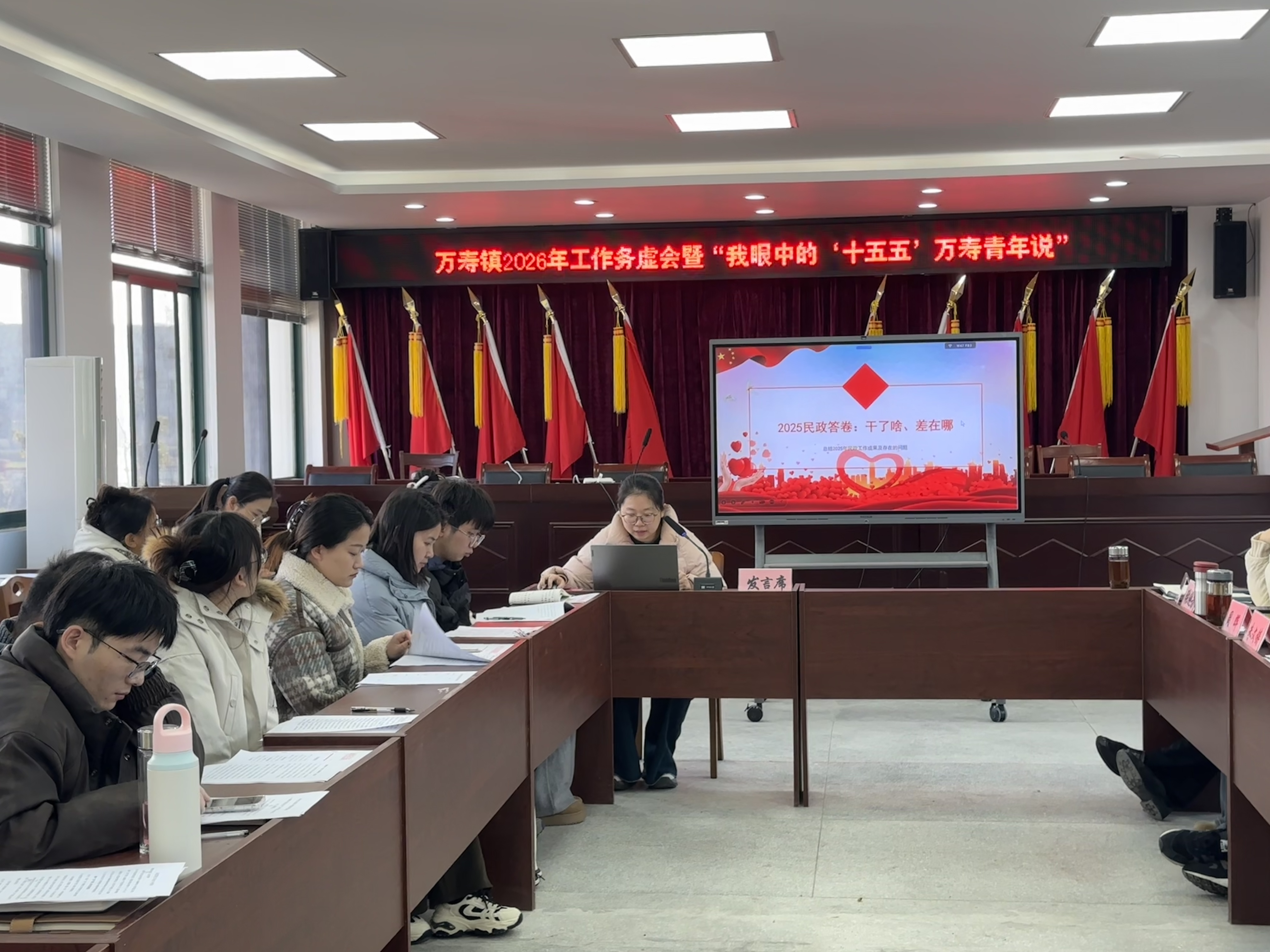 为深入学习贯彻党的二十届四中全会精神,凝聚青年力量赋能万寿镇“十五五”高质量发展,1月28日上午,万寿镇举办“我眼中的‘十五五’万寿青年说”主题活动。镇班子成员、村(社区)书记及“淬火”小组全体成员参会,青年干部们立足统计、民政、安全生产等岗位谈思考、献良策,党政班子成员汇报2026年工作计划,镇党委书记邵启萍作点评总结,为青年干部奋进新征程指明方向。