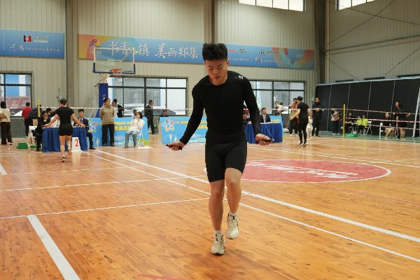 仪式结束后,参赛选手有序退场检录,正式开启赛场角逐。从30秒单摇跳的速度比拼,到10人长绳“8”字跳的团队协作,从个人花样的技巧展示,到绳王争霸赛的巅峰对决,选手们在郑集的赛场上尽情挥洒汗水,展现跳绳运动的独特魅力。