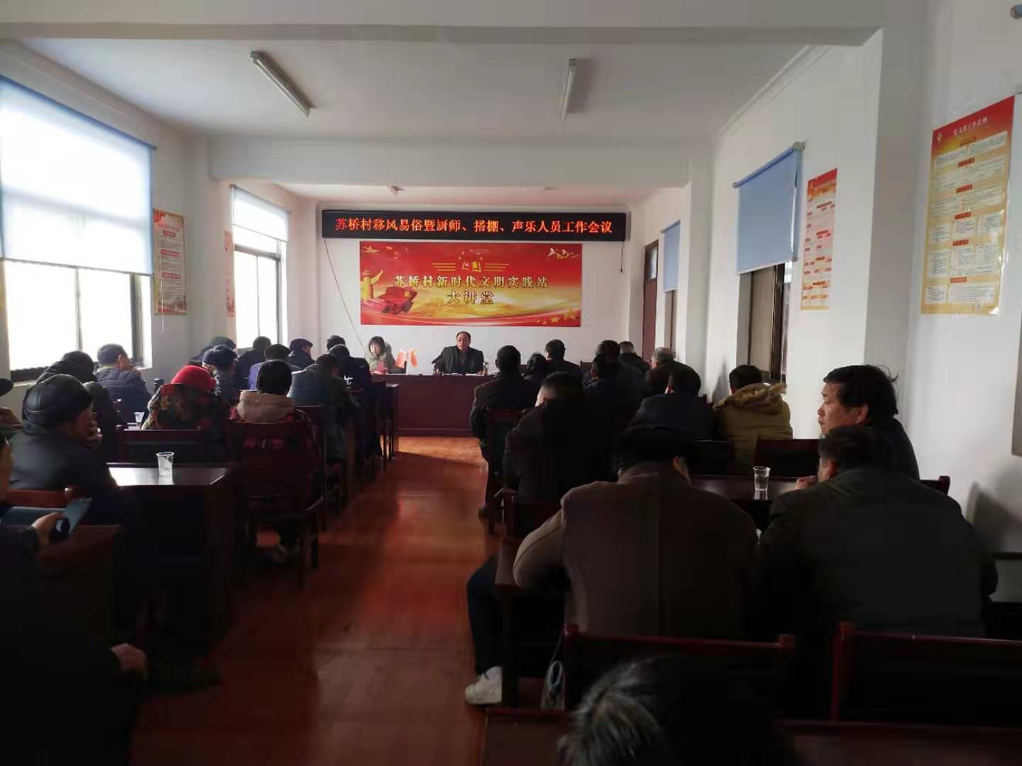 因积极响应党委政府号召,我苏桥村于2020年1月20日下午在村会议室召开移风易俗暨厨师、搭棚、声乐人员工作会议。总支书记主持此次会议,会上主持人宣读上级重要文件大家认真听取领悟其内涵。同时当场签订承诺书积极维护党中央决策。
