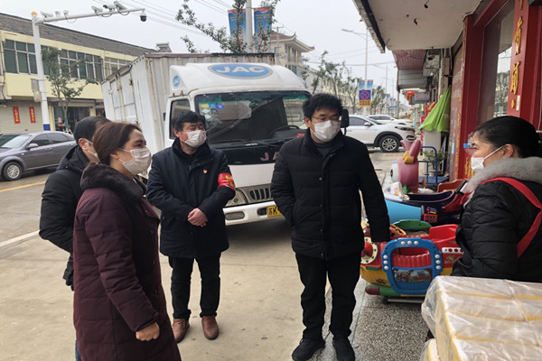 2月15日上午,镇党委副书记程德兵、主任科员张琴和党委委员董元峰来到界牌社区督查冠状肺炎疫情防控工作。