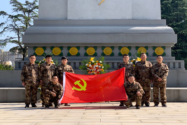在烈士墓前,全体官兵庄严肃立,大家怀着沉重的心情默哀三分钟,表达对革命先烈的哀思。党员代表向革命烈士敬献了花圈,全体人员向烈士纪念碑三鞠躬,并聆听了革命烈士的生平事迹,重温了入党誓词,瞻仰了革命烈士纪念碑。随后,大家来到一个个烈士墓碑前,小心清理周围的杂草,擦拭墓碑上的灰尘。近一个小时下来,所有的烈士墓碑都被擦拭得干干净净,光亮照人。民兵们用实际行动表达对烈士的崇敬和缅怀之情,同时为社会各界悼念革命先烈提供一个整洁的环境。
