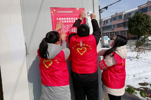 2月16日,便东村继续开展疫情防控宣传活动。虽然外面的积雪还没有融化,天气还比较寒冷,但阻挡不了志愿者们上门宣传的热情。