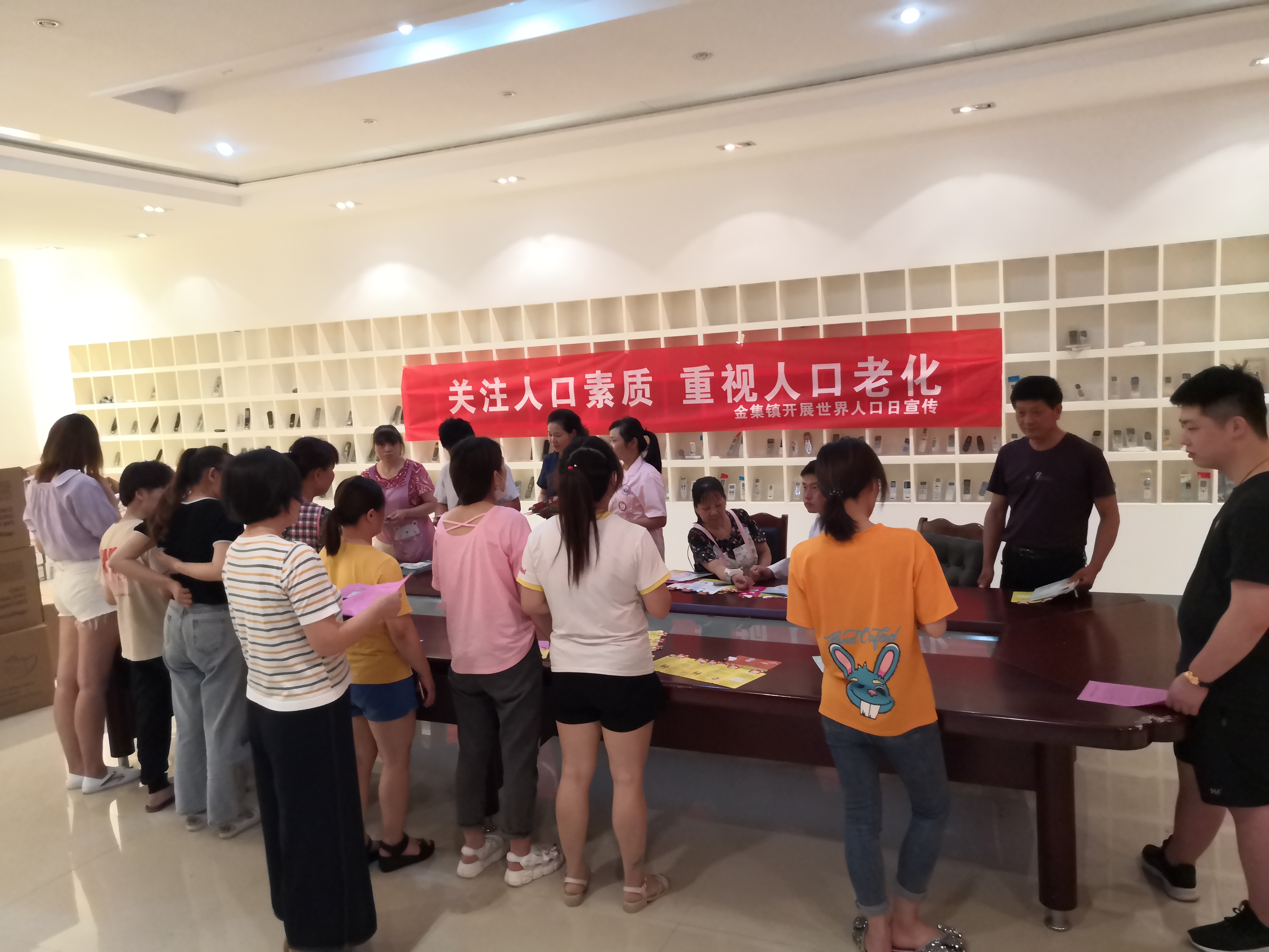 2020年7月11日是第31个世界人口日,为进一步提高群众的人口意识和健康观念,近日,金集镇计生协与镇卫生院联合开展以“关注人口素质、重视人口老化”为主题的宣传活动。