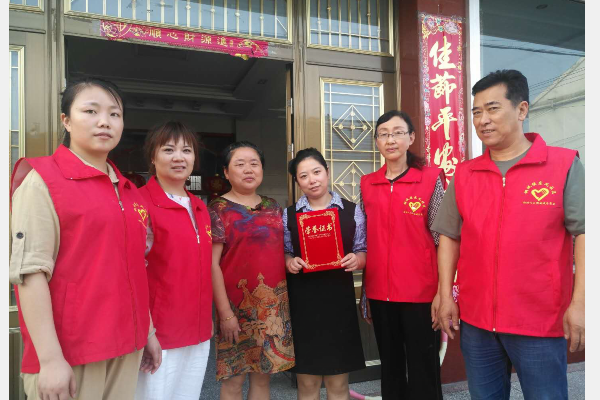 为了更好地推进移风易俗,建设乡风文明,东风社区移风易俗志愿者服务队,为受表彰的移风易俗先进户送荣誉证书,推进移风易俗宣传工作。