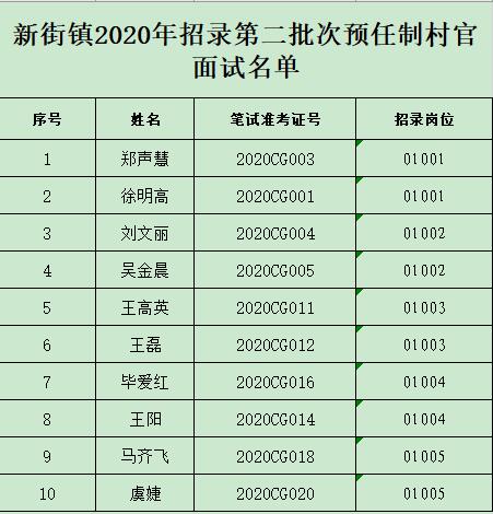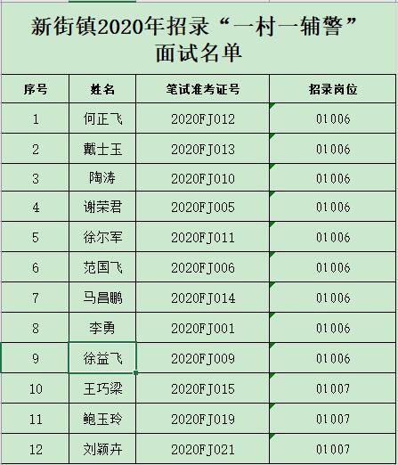 新街镇2020年招录第二批预任制村官和“一村一辅警”面试工作将于2020年9月19日举行,请各位考生在9月18日前领取面试通知书。现将面试名单公告如下:
