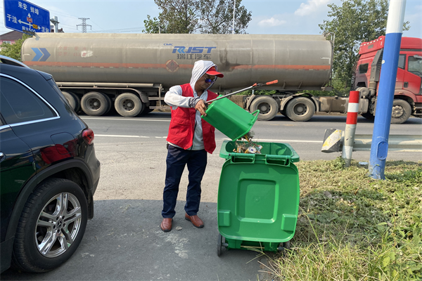 活动中,志愿者们拿着垃圾夹、铲子等工具,到G345集镇段(高架桥至中润集团)清理路边生活垃圾、绿化带内的杂物,并对沿路商户门前乱停电动车现象进行劝导。