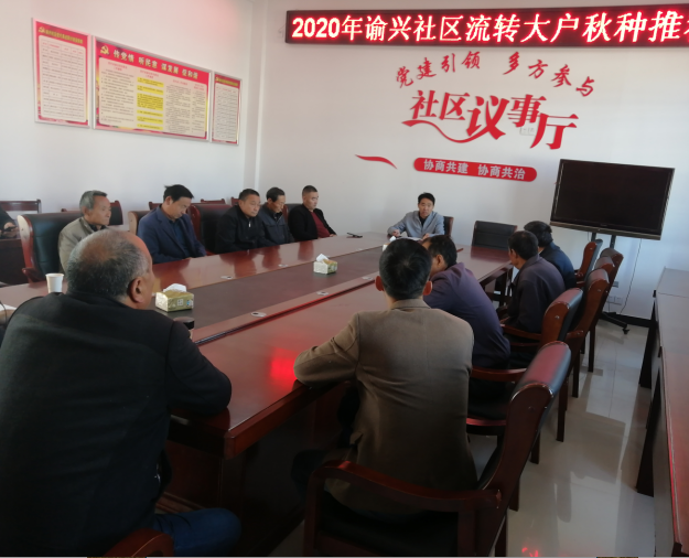 2020年11月1日,金集镇谕兴社区党总支副书记张安林组织召开流转大户秋种推进会,辖区种植大户15人参会,土地流转面积约5000余亩。