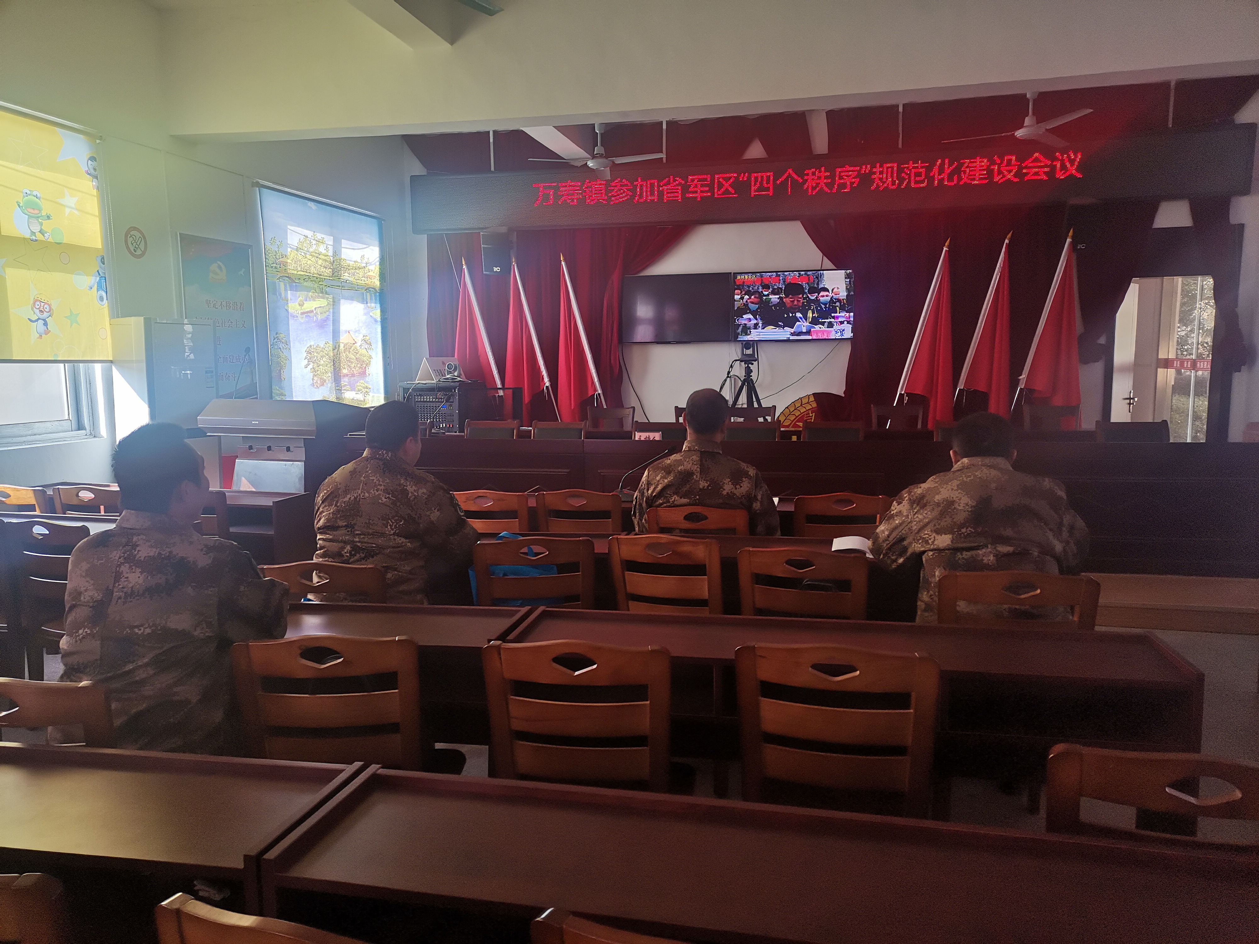 1月21日,万寿镇专武干部及民兵营长在镇一楼会议室视频收听收看了省军区“四个秩序”规范化建设会议。