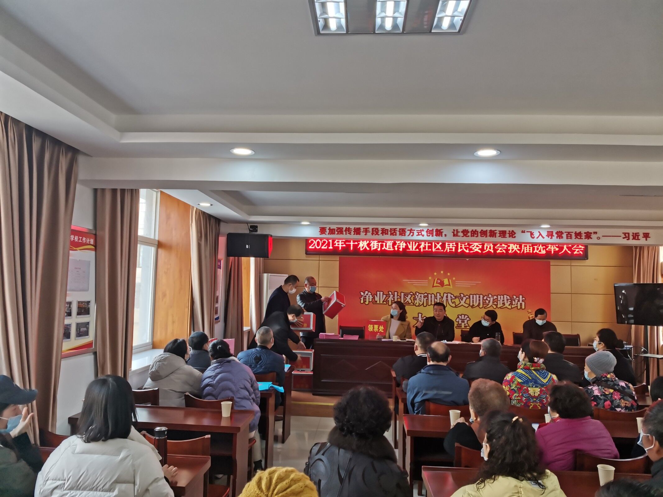12月10日上午8点30分,2021年千秋街道净业社区居民委员会换届选举大会在净业社区三楼会议室如期举行。