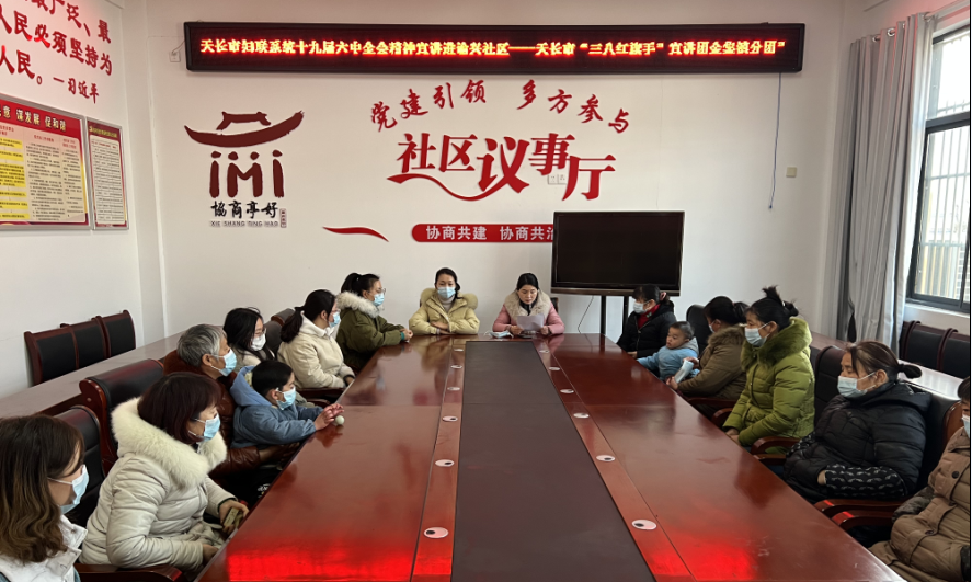 1月13日,谕兴社区召开天长市妇联系统十九届六中全会精神宣讲进谕兴社区——天长市“三八红旗手”宣讲团金集镇分团宣讲活动,为充分发挥优秀女性的榜样示范带动作用,积极践行和弘扬社会主义核心价值观,谕兴社区妇联组织了社区的三八红旗手、社区妇女代表等参加了本次的宣讲活动。
