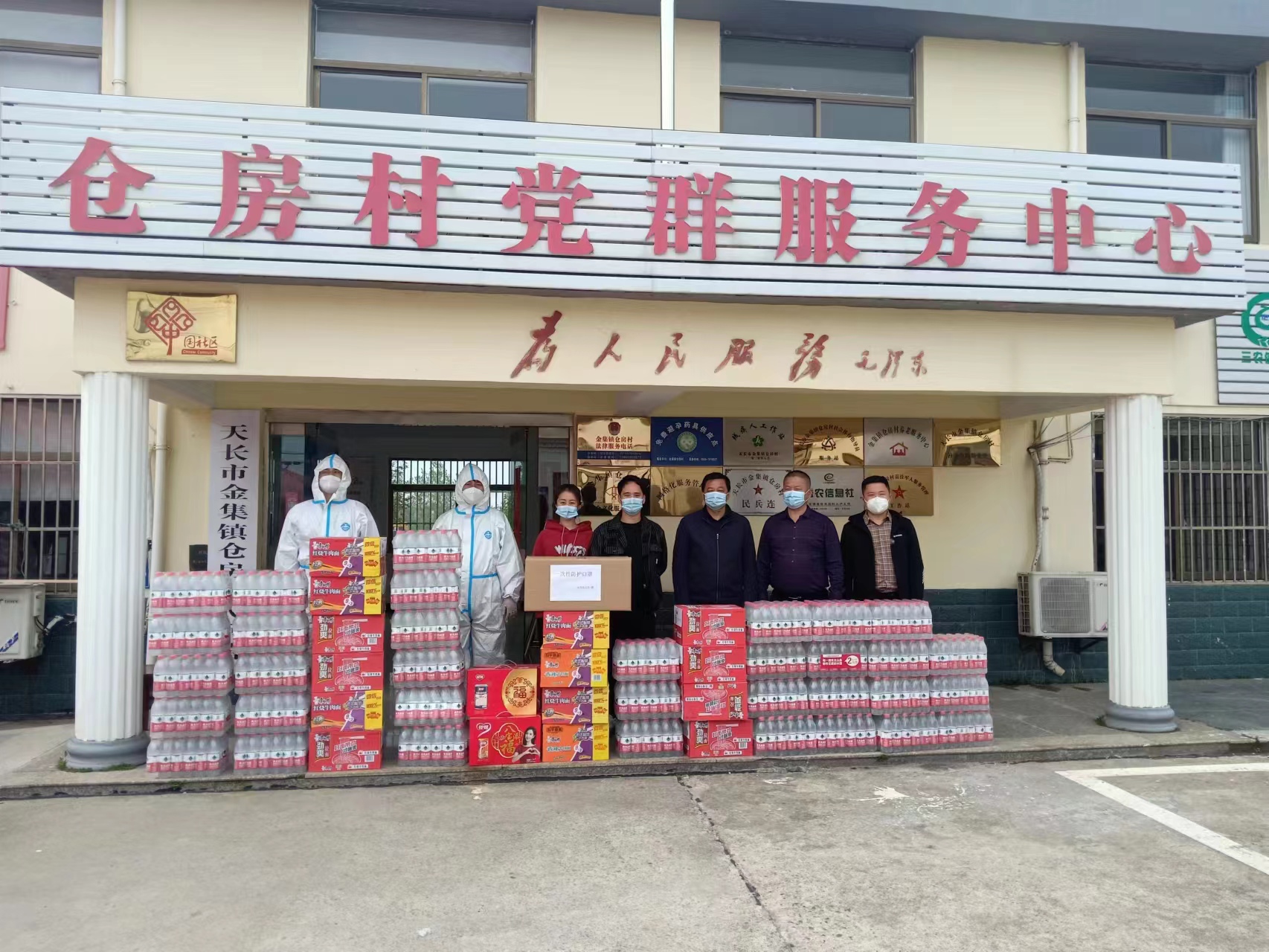 爱心单位和个人有:天长市麦格伦工艺刘荣金夫妇、入党积极分子吴长俊、张宗华等爱心单位和爱心人士。向仓房村疫情防控一线工作者捐赠了饮料、矿泉水、方便面、八宝粥、红牛饮料等防控物资,用实际行动为仓房村筑起了坚强战“疫”的后盾。