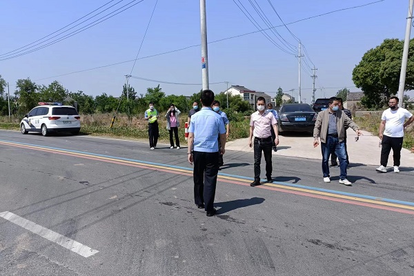 5月17日上午市公路站、交警队、镇公路站领导一行到施庄村杨巷路段现场察看路况,对该路段存在安全隐患的地方提出整改意见,要求杨巷至丰收水泥路段进出口处安装减速带,“99公路”施庄村杨巷该路段安装警示灯、画等待停止线,强化对村民出行一慢二看三通过的交通安全意识。