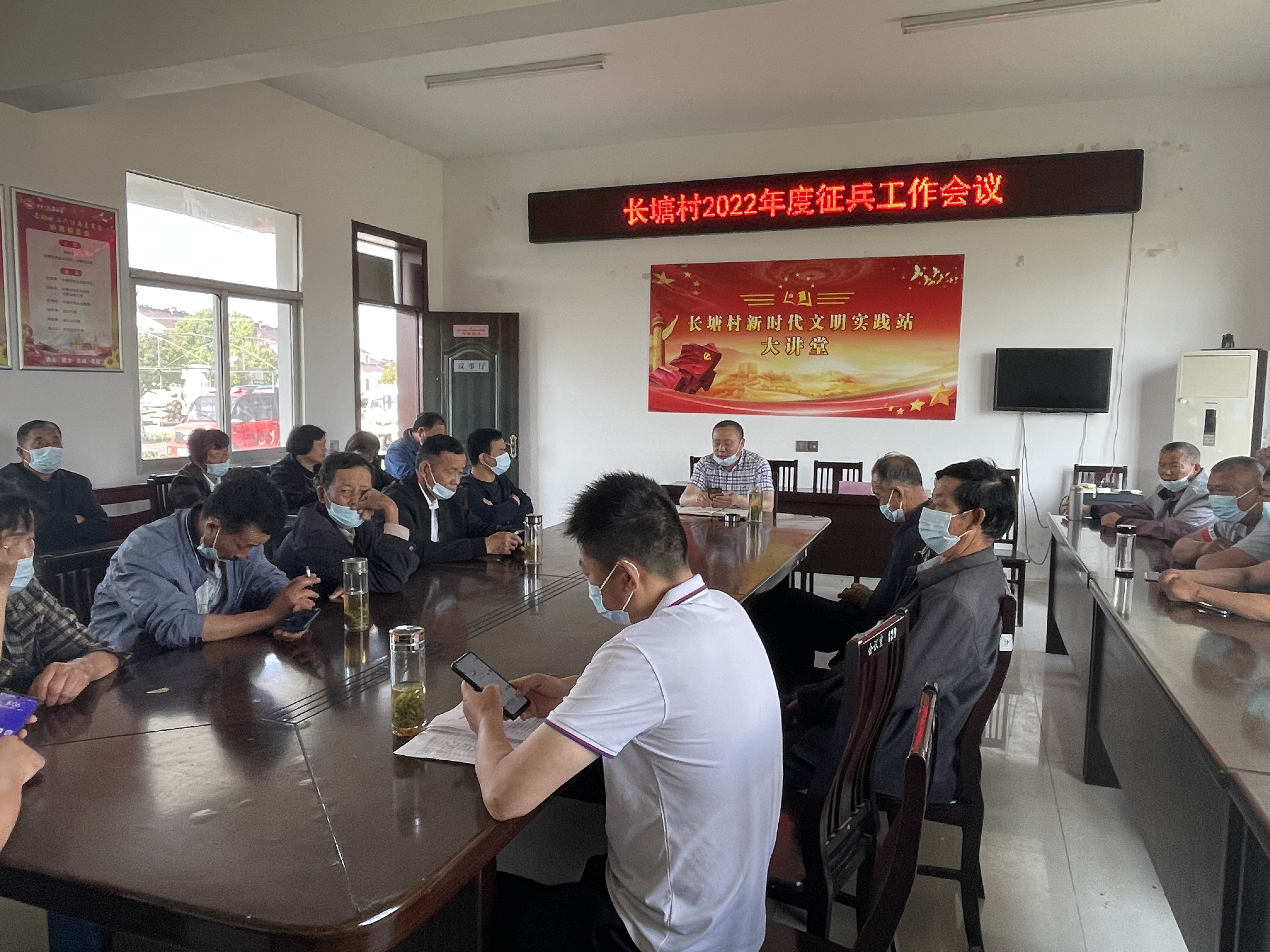会议中长塘村党总支书记对征兵工作提出三点要求:一是提高政治站位,切实增强做好征兵工作的责任感、使命感、紧迫感。要高度重视,深刻领会上级政策,充分对标新时代新任务新要求,以更加强烈的责任感和更加务实的作风高标准完成今年的征兵任务。二是把握关键环节,提升征兵工作质量效益。坚持高标准、严要求,紧紧围绕“提高兵源数量、严把兵源质量”这一核心,把好体检关、政治考核关、文化素质关、训练教育关、审批定兵关、廉洁征兵关。三是加强组织领导,确保各项工作任务落到实处。严密组织,确保组织领导到位、协调配合到位、宣传引导到位、政策优待到位,认真贯彻落实上级的各项决策部署,高标准、高质量完成我村今年的征兵任务。