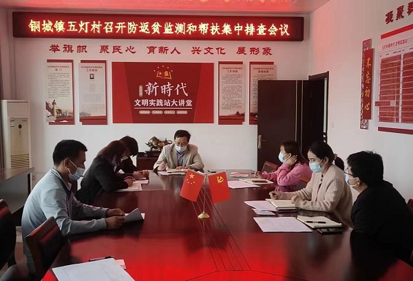 2022年5月11日,铜城镇五灯村组织召开村干部工作会议,会议主要是防返贫监测和帮扶集中排查,会议首先由民政专干张佐君对帮扶网格员进行业务培训,会议最后由杜书记对当前工作作部署。