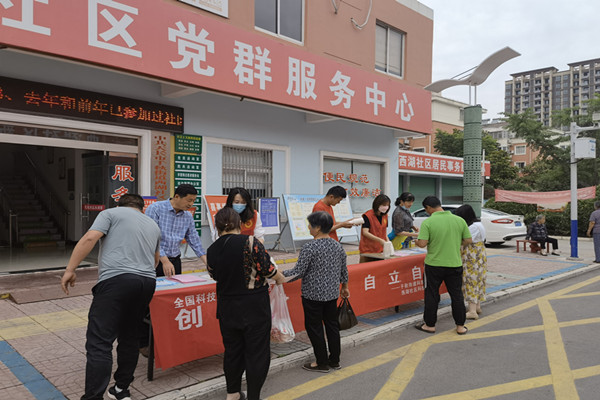 二是组织西湖社区科技志愿者在社区便民服务大厅门口设立宣传台,通过发放科普读物、防范网络电信诈骗手册、疫苗接种知识图片展,并进行现场解答等方式,进一步提升广大群众对防诈骗知识的知晓率,自我保护和自我防范意识,同时号召广大居民相信科学,不信谣不传谣,积极主动参加疫苗接种,共筑免疫长城。