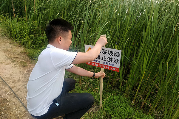 夏季已至,天气逐渐变热,中小学生溺水事故进入多发、频发期。为了进一步预防青少年儿童溺水事故的发生,充分发挥村校共建,切实履行好对青少年儿童的教育和监管职责,共同把孩子的安全教育落实到每一个细节中,街南村开展防溺水宣传活动,同时与各村民组长签订防溺水目标责任书,在辖区内59个塘坝醒目位置安插警示标志“水深坡陡禁止游泳、注意安全珍爱生命”。