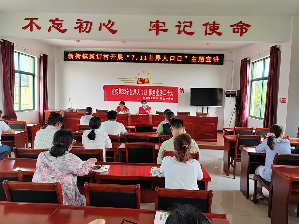 在第33个世界人口日来临之际,结合当前疫情防控工作,7月11日上午新街村在镇卫健办的指导下,组织村民开展“7.11世界人口日”宣传活动。