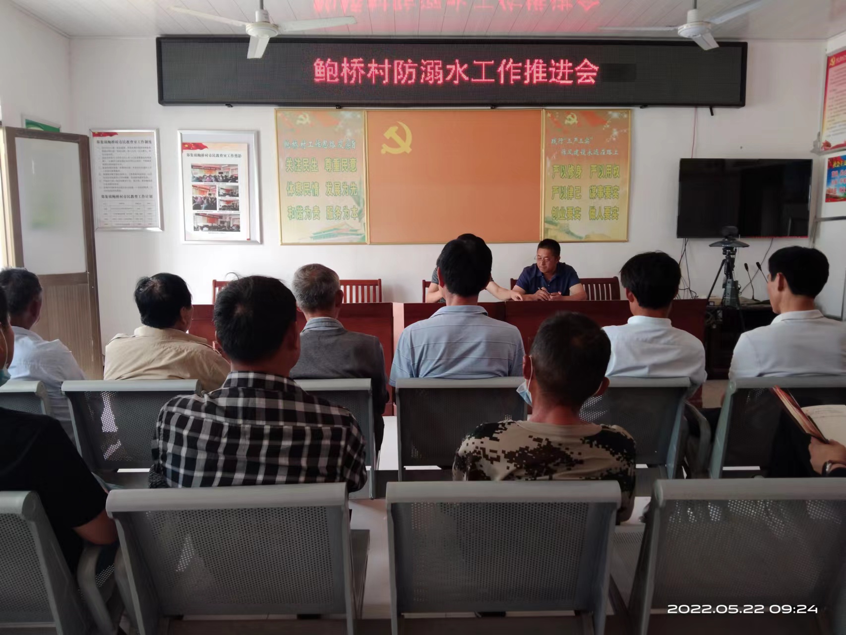 5月22日,鲍桥村召开防溺水工作推进会,向村民宣传防溺水知识,号召大家时刻关注未成年人下水游泳,为未成年人筑起防护墙。