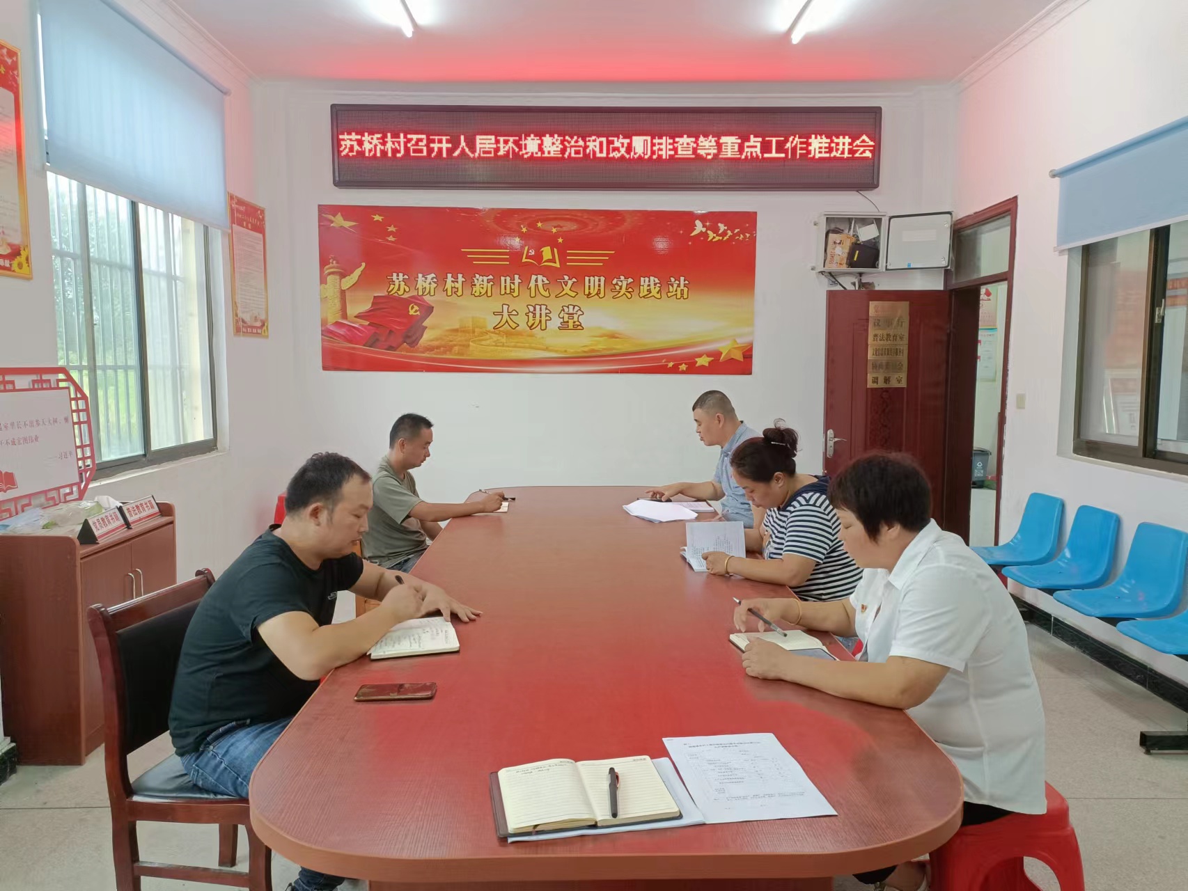 2022年8月21日苏桥村召开人居环境整治和改厕排查等重点工作会议,传达了上级会议精神和要求,村组工作人员实行包片分组,强化责任,落实措施。