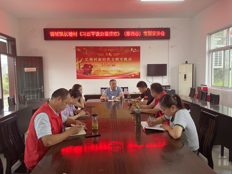 2022年9月13日下午铜城镇长塘村开展《习近平谈治国理政》第四卷专题宣讲会,宣讲人为长塘村党总支书记杨欧平同志。
