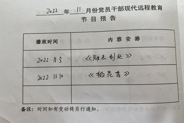 上一篇:雷庄村2022年10月份远程教育播放计划[ 10-01 ] 下一篇:雷庄村2022年12月份远程教育播放计划[ 12-01 ]